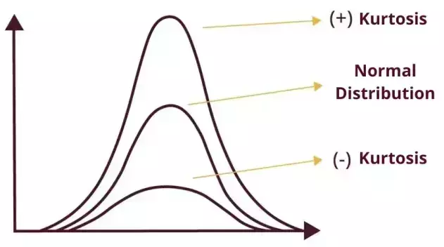 A distribution with a higher kurtosis will have a more tapered shape, with a concentration of values around its mean. On the other hand, a distribution with a lower kurtosis will have a flat shape, with values spread over a larger range.